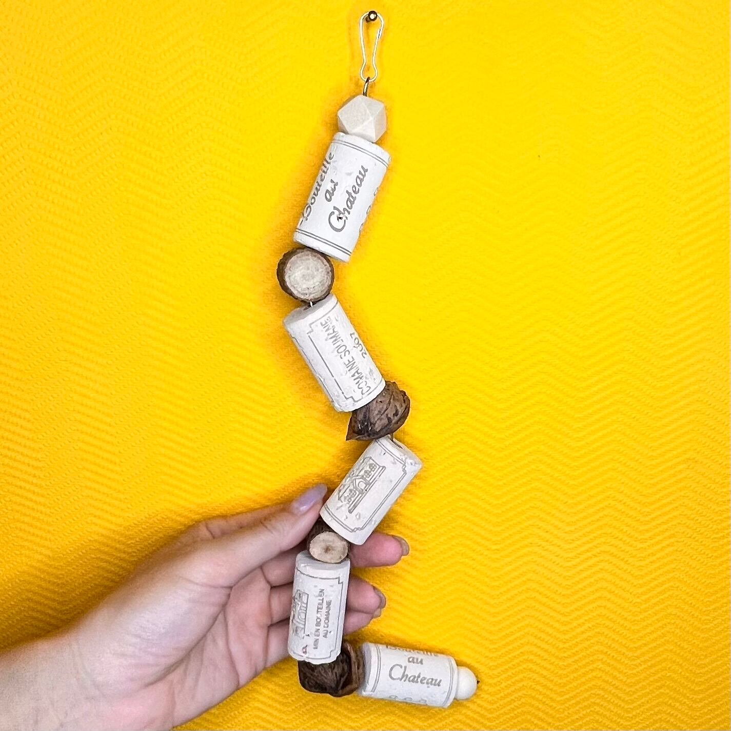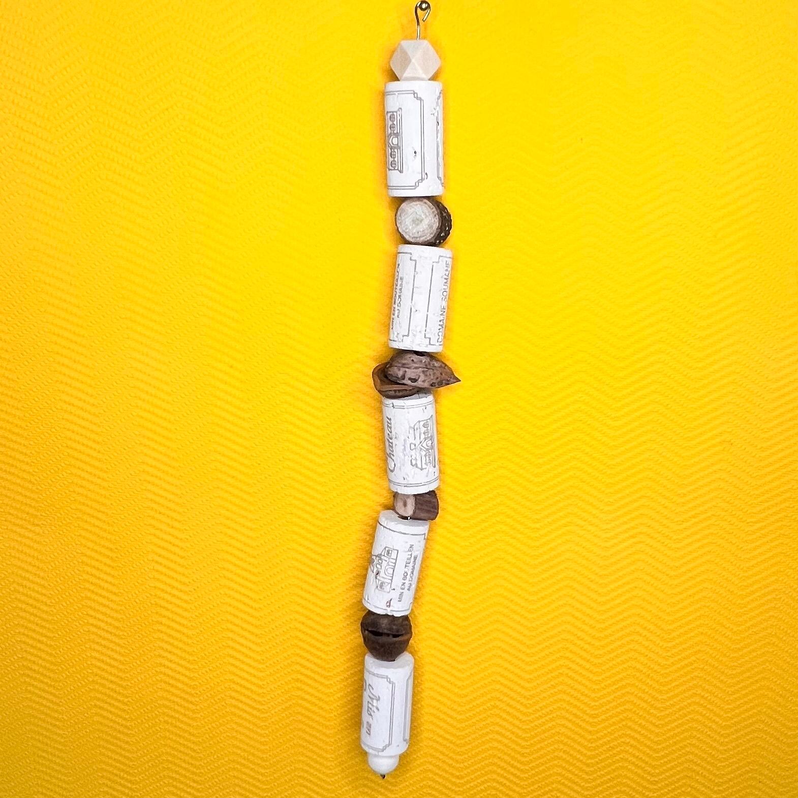沢山の天然コルクと自然素材を丈夫なステンレスワイヤーで通しており、お好きな形にして取り付け可能です