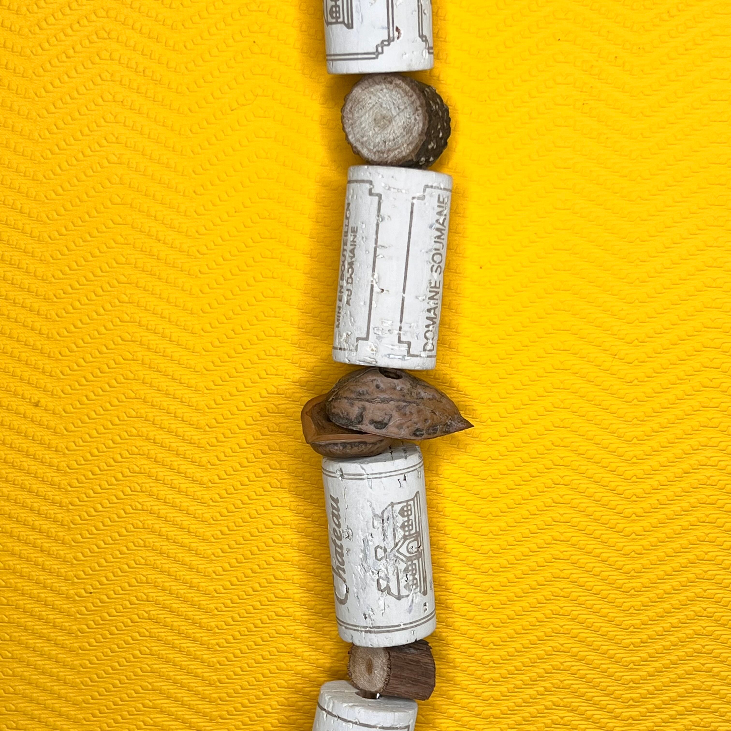 天然コルク・クルミの殻・天然木・ステンレス線・ステンレス留め具
