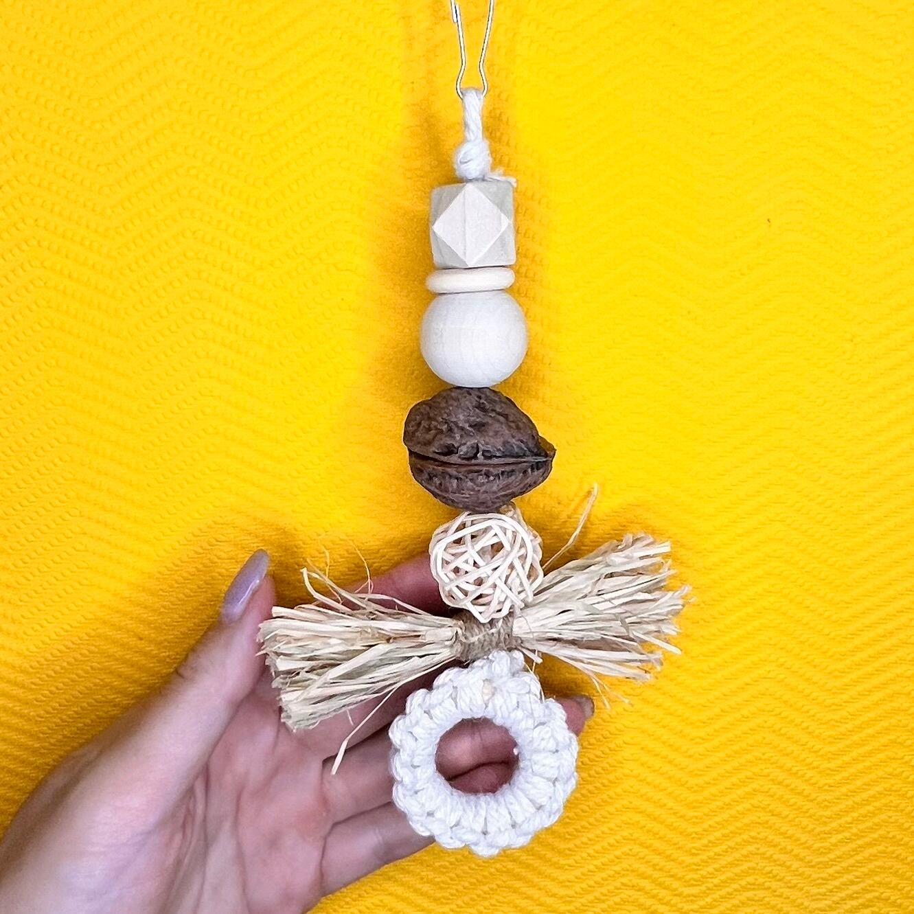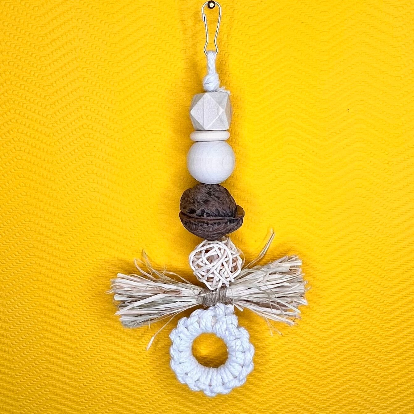 クルミ・ラフィア・ウッドビーズ・ウッドリング・天然木・ラタンボール・コットンコード・ステンレスとめ具など
