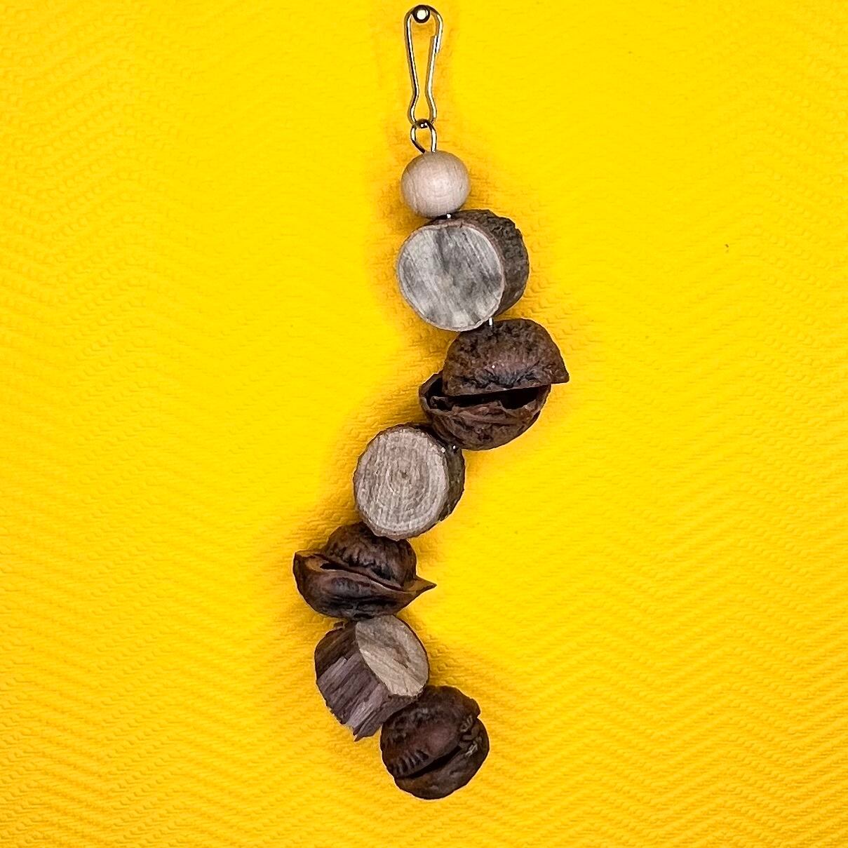 クルミの殻・天然木・ステンレス線・ステンレス留め具