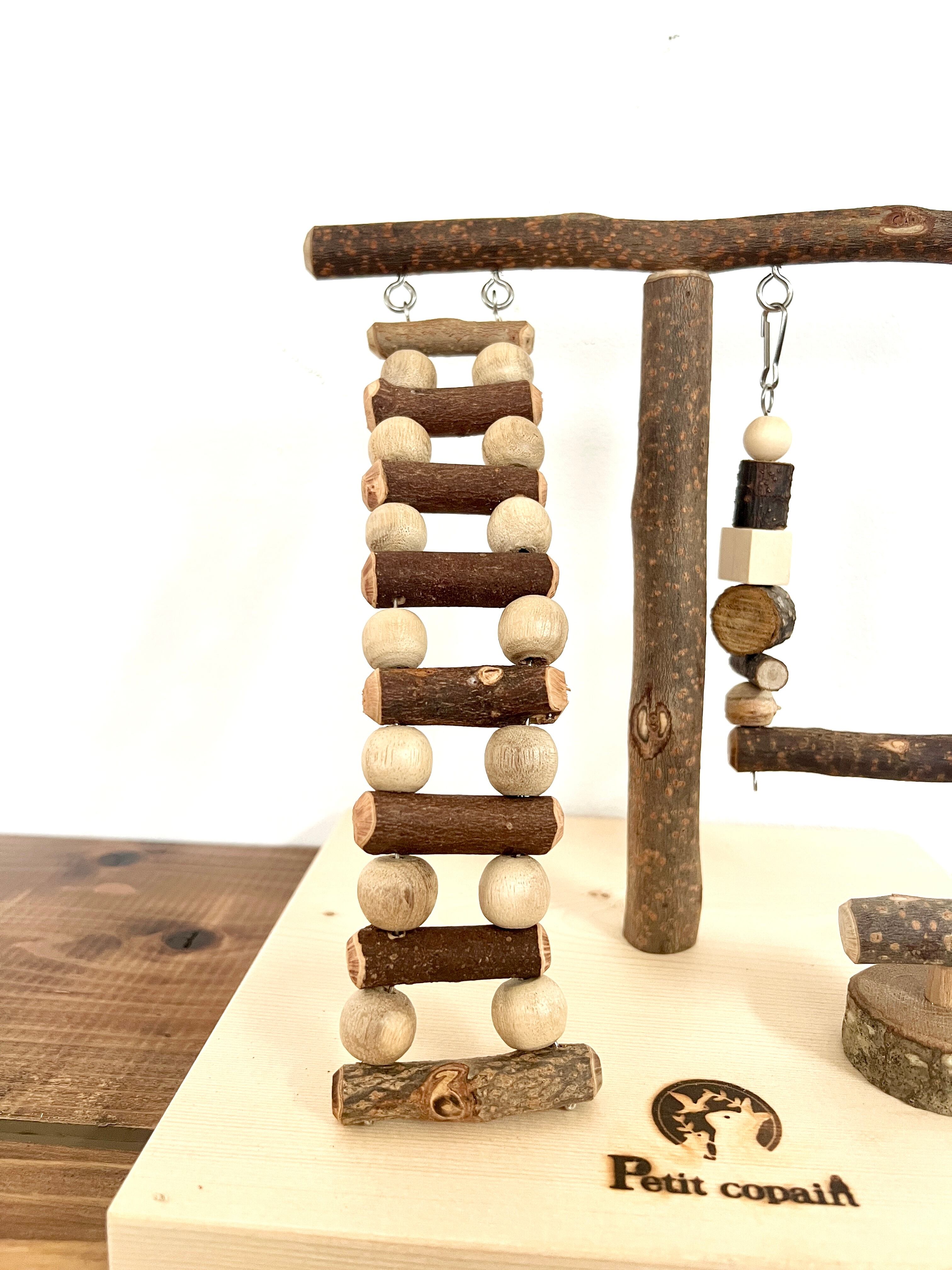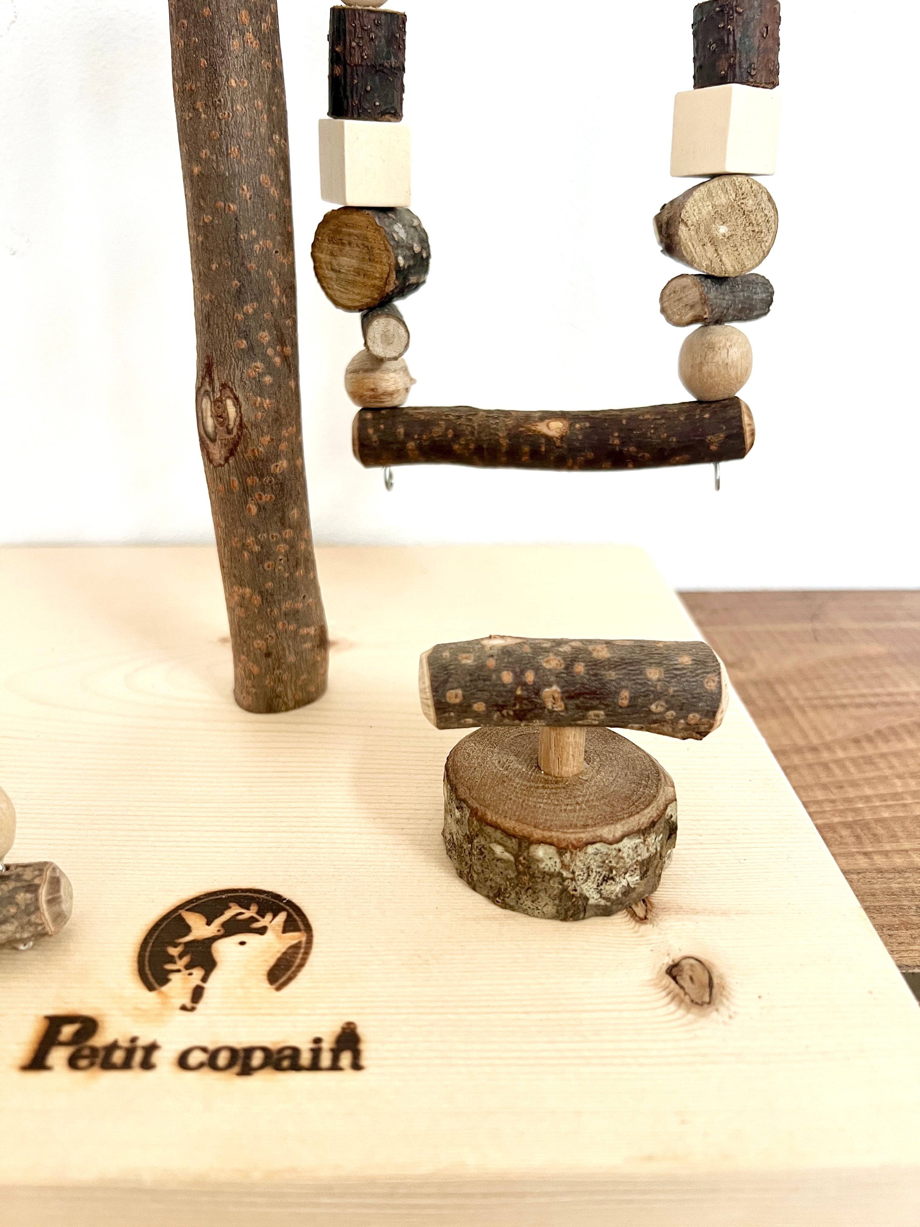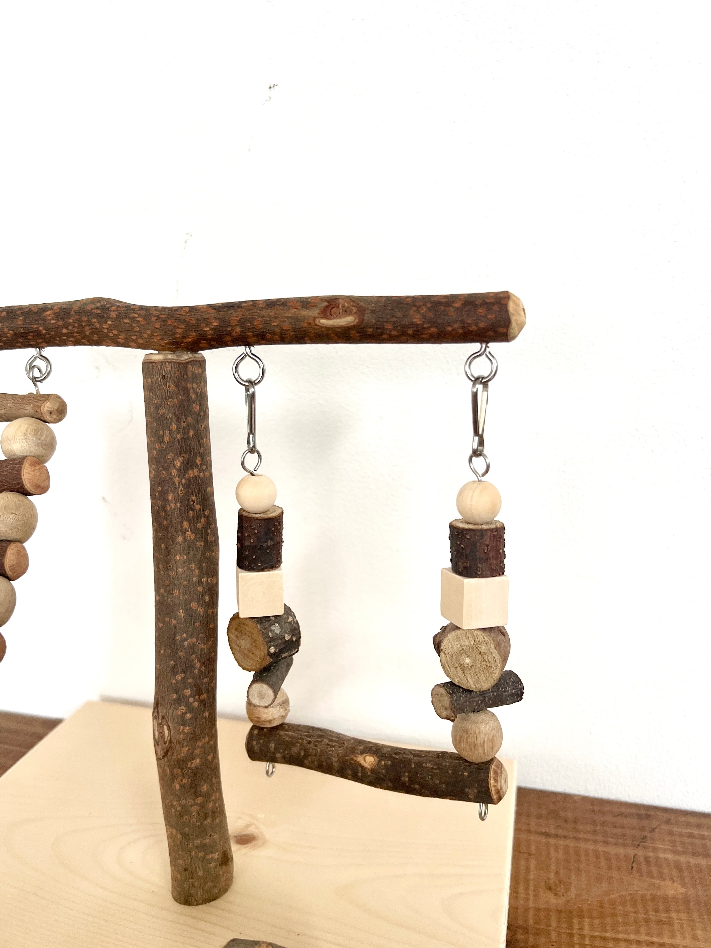 天然素材を使っているので鳥さんの足にも良くおもちゃやブランコで遊びながら楽しい放鳥タイムをすごして下さい