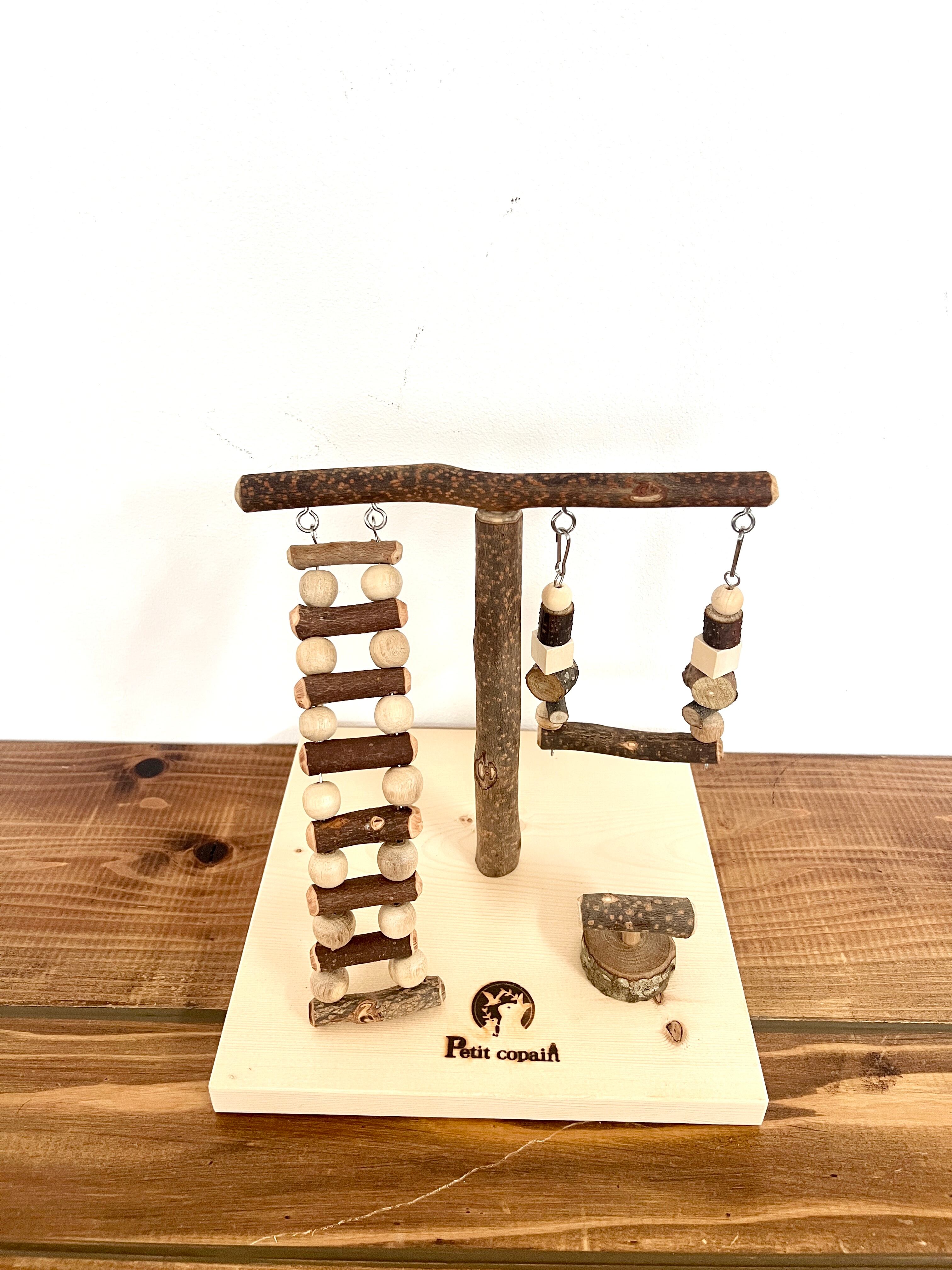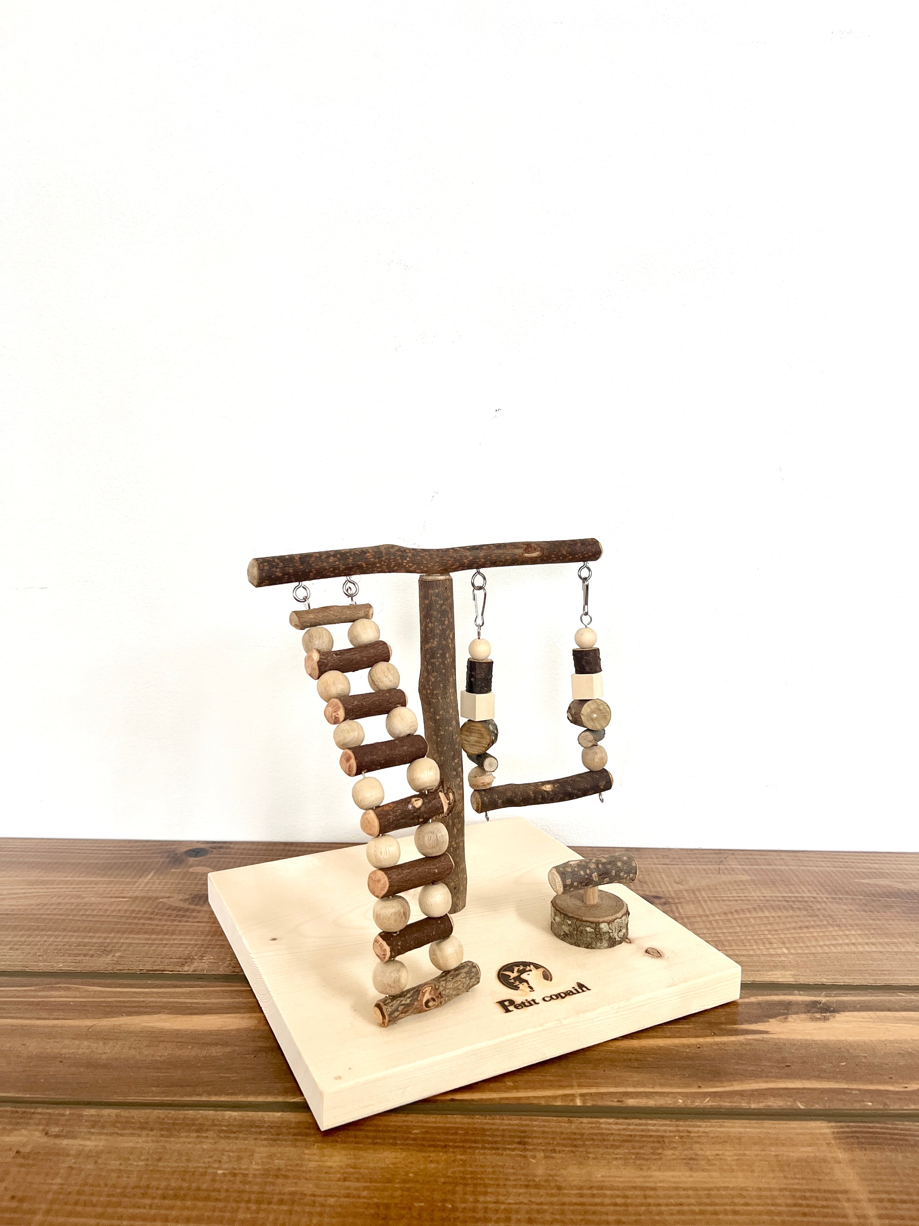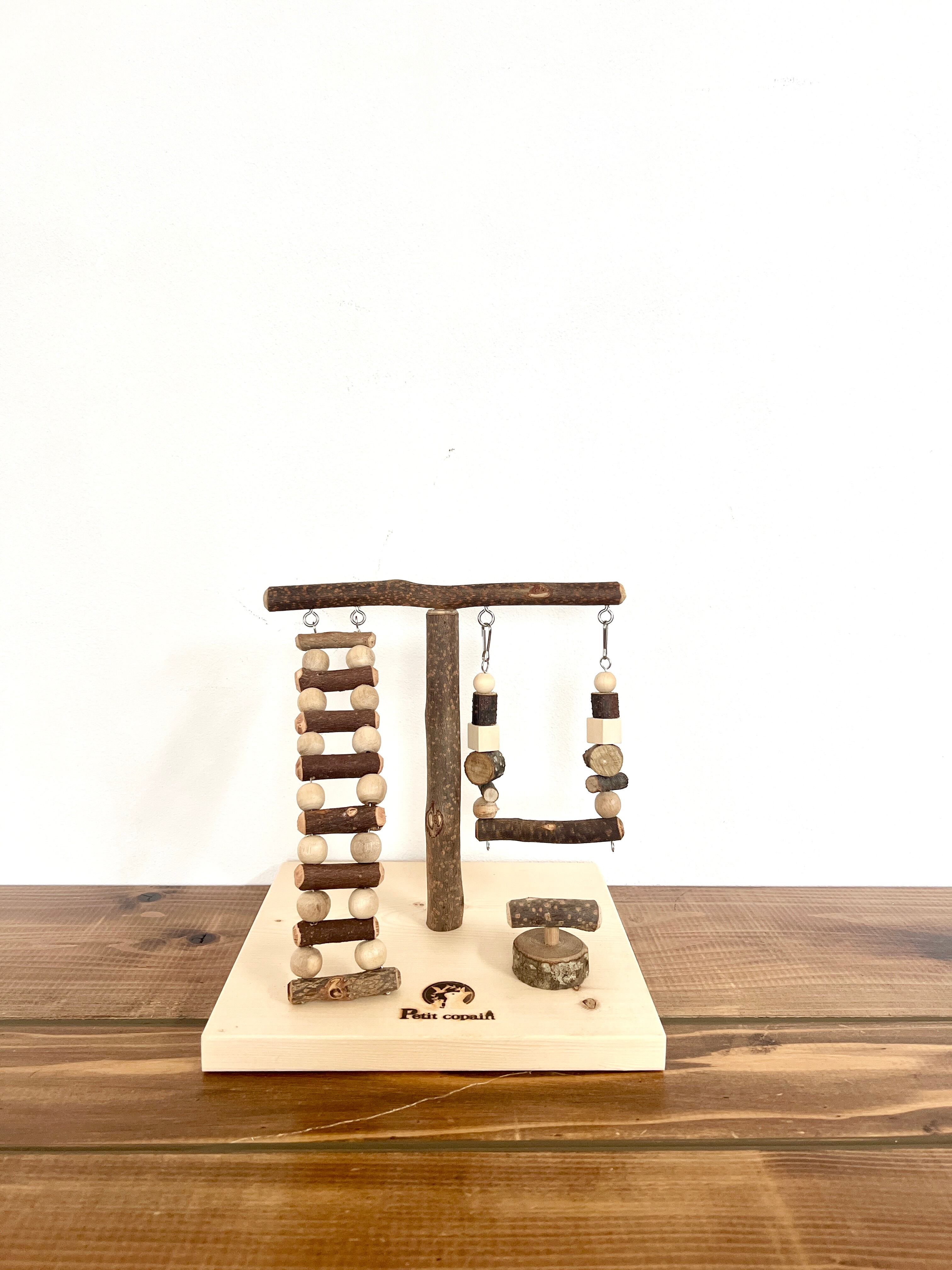 天然素材を使っているので鳥さんの足にも良くおもちゃやブランコで遊びながら楽しい放鳥タイムをすごして下さい