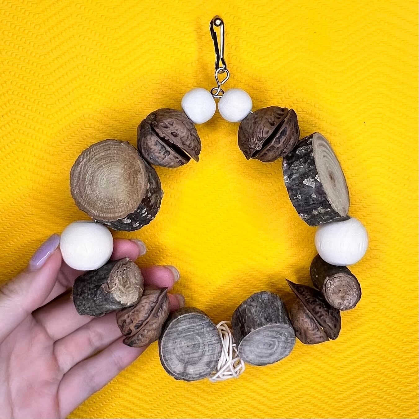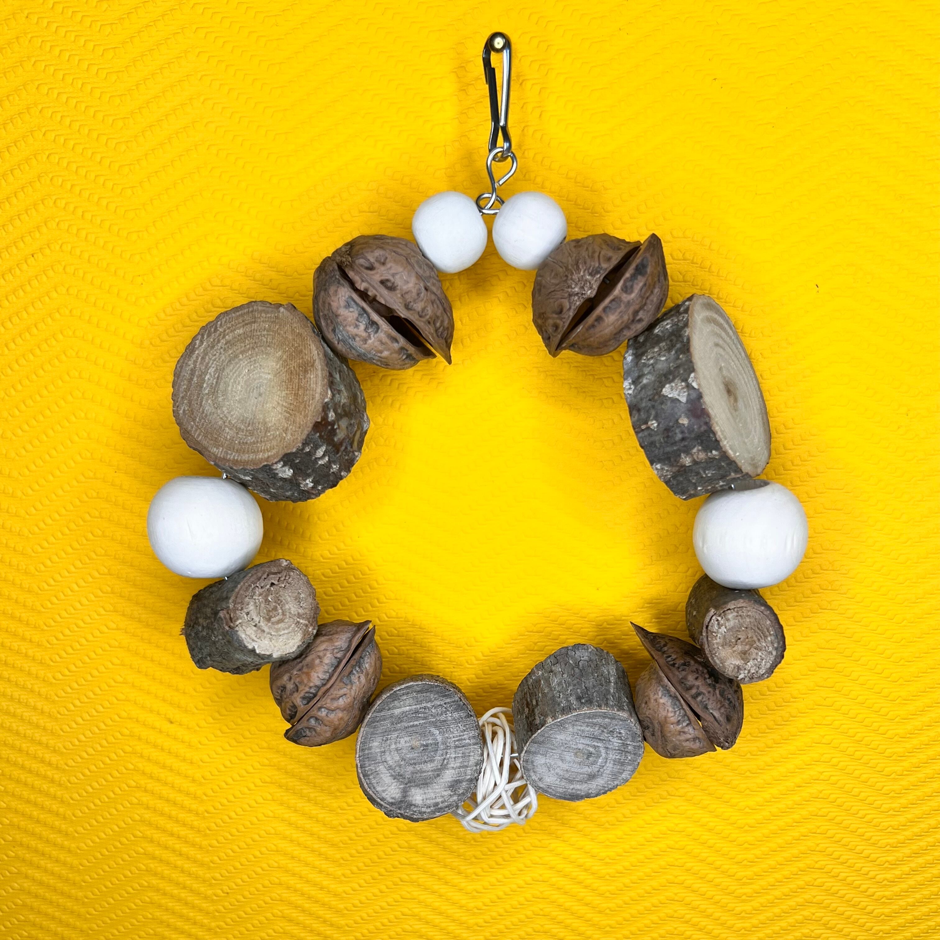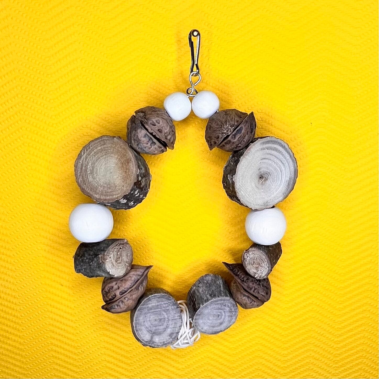 クルミの殻・天然木・ステンレス線・ステンレス留め具